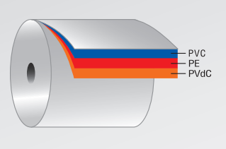 PVC Rigid Film laminated with PE film and then coated with PVdC.